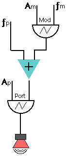 Em FM uma onda portadora tem sua frequência modulada por uma onda moduladora. Quando a frequência da moduladora é baixa, o efeito é de uma variação da frequência portadora conhecida como vibrato. Quando a frequência da moduladora está na faixa audível, o que ocorre é o surgimento de frequências (sidebands) em torno da portadora. Ao contrário do que acontece com as técnicas de AM e RM, em FM são gerados não apenas dois parciais (sidebands), um acima e outro abaixo da frequência portadora, mas vários. Cada um desses parciais aparece a uma distância da onda portadora que é múltipla da frequência moduladora, sendo que o número de parciais existentes é proporcional à quantidade de modulação aplicada.